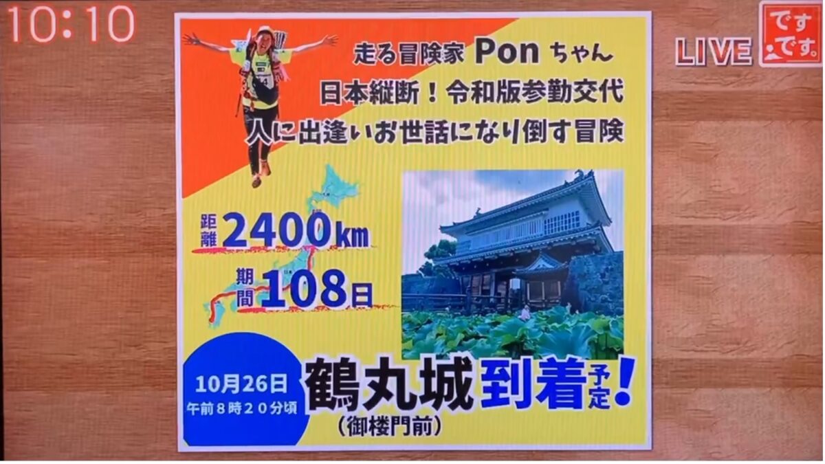 令和版参勤交代もいよいよあと2日。KKB鹿児島放送9:55からの「ですです。」でこれまでの様子やゴール日(26日)のことを紹介してくださいました。 これまでも継続的に紹介していただき,とてもありがたいことです。