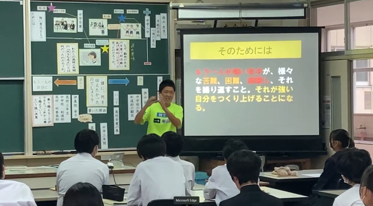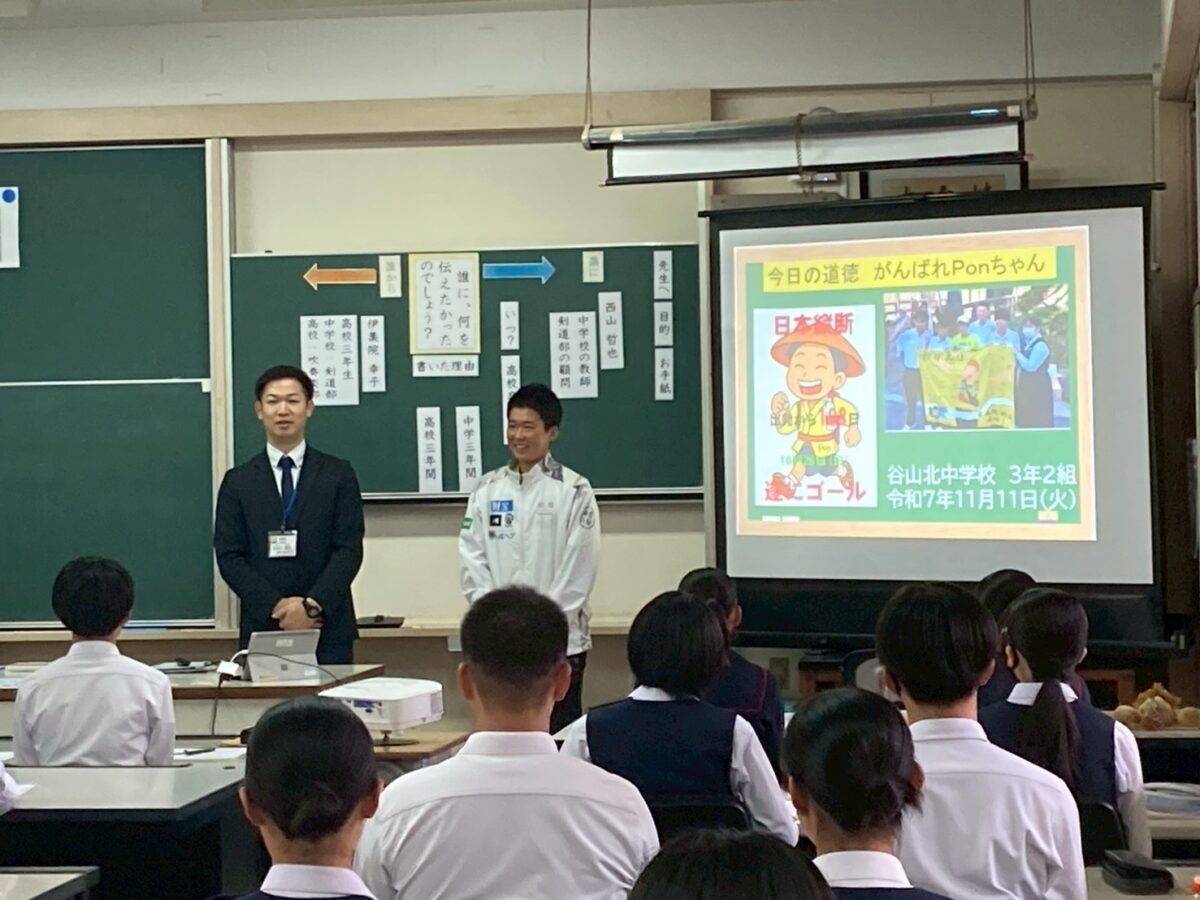 本日鹿児島市立谷山北中学校のキャリア教育の研究公開がありました。その中の3年生の公開授業(特別の教科道徳)でPonがゲストティーチャーとして授業に参加しました。