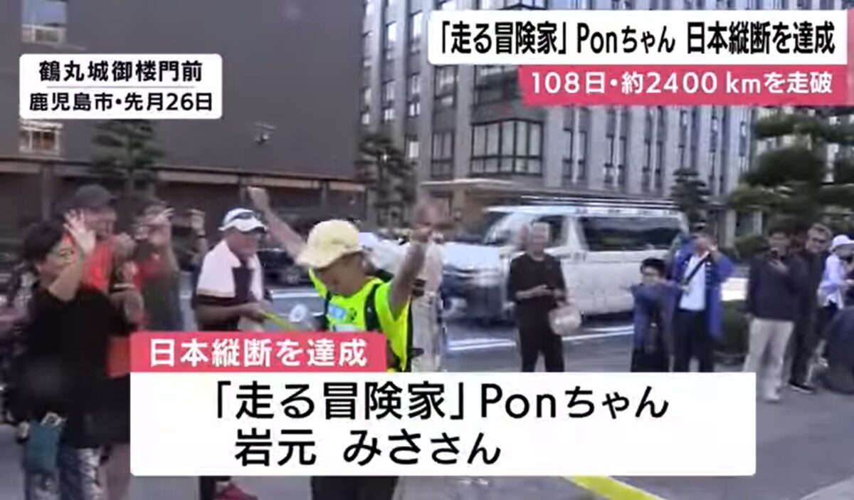 「走った距離は2724.64kmです。インタビューの回答で、孤独との闘いだったとありますが、これまで出場してきた砂漠レースが孤独であり、今回の日本縦断に関しては、ずーっと毎日誰かに支えられながら、北海道から鹿児島まで走ってくることができました🤝(ほとんど走ってる時間は山の中でも1人だったから、寂しいとか怖いとかもあったけど、そんなの吹き飛ばすくらい日々の出逢いによる心の支えのほうが大きかったです。人の温かさをたくさん感じた日本縦断になりました。)」<Ponの補足コメントです>