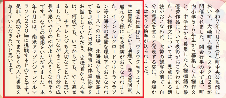 12月7日(日)の大崎町人権フェスタ2025の様子が「広報おおさき」に紹介されました。