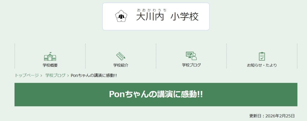 Ponちゃんの講演に感動!! | 大川内小学校|鹿児島県出水市 みんなでつくる活力都市 住みたいまち 出水市
