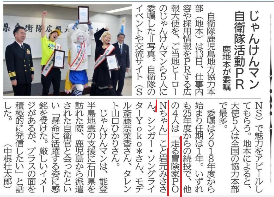 4月13日(月)に令和8年度鹿児島県自衛隊広報大使委嘱式がありました。Ponは本年度も引き続き広報大使を委嘱されました。