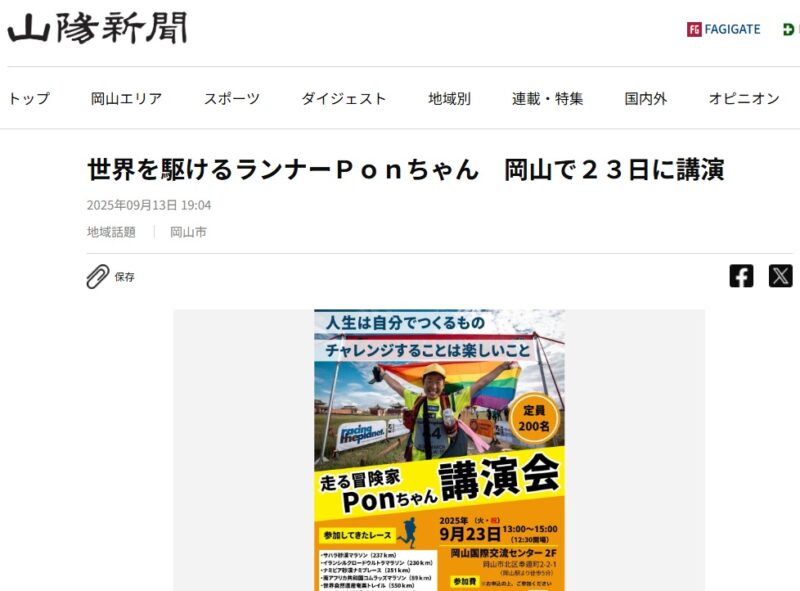 日本縦断中のPonは岡山県を走っています。それに合わせてなんと岡山市での講演会を計画してくださり、昨日9月23日に開催されました。 200名を超えるたくさんの皆様に来場いただき、熱心に聞いていただきました。ありがとうご […]